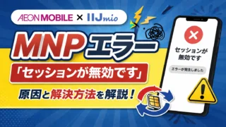 未分類【イオンモバイル×IIJmio】ワンストップMNP ERROR「申込み情報 セッションエラー」の原因と対処法 イオンモバイルのMNPワンストップで「申込み情報 セッションエラー」が出て進めない原因と対処法を解説。IIJmioからの乗り換え時に発生するケースや、MNP予約番号を使った解決手順、IIJmioのマイページからMNP予約番号の確認方法も記載。 2026.03.22未分類