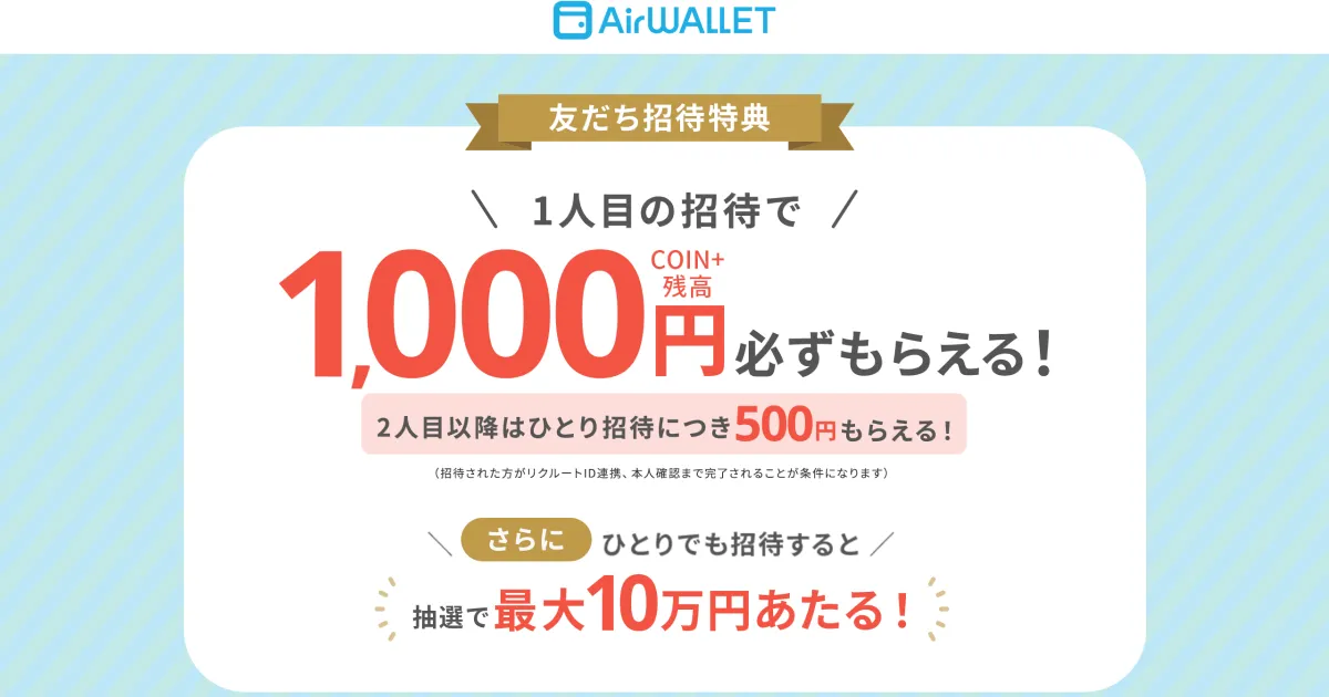 【1人招待で1,000円】エアウォレット友だち招待プログラム | リクルートID・ポイント公式サイト