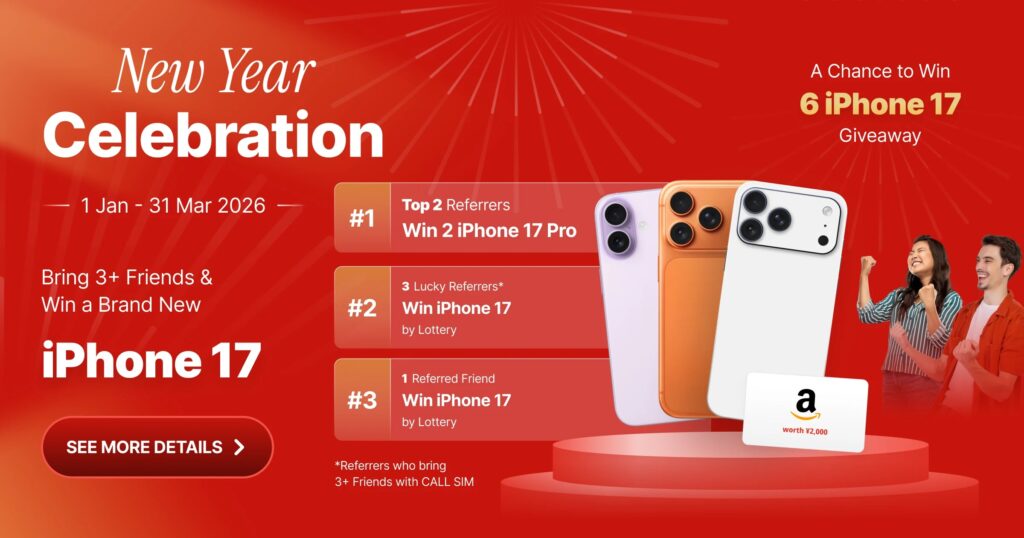 In addition to the standard referral bonus, JP SMART SIM is running a special 2026 New Year Giveaway.
