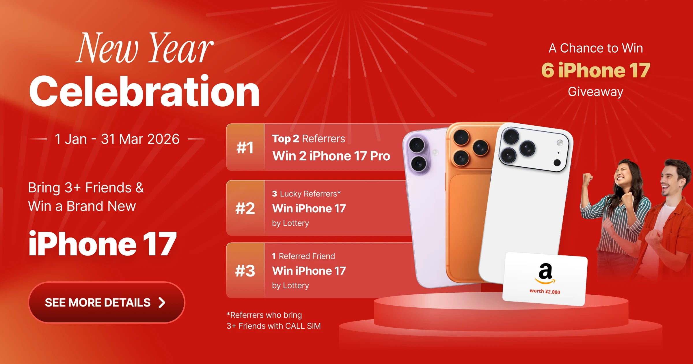 By participating in the referral program during the campaign period, you may have a chance to win an iPhone 17 or iPhone 17 Pro.