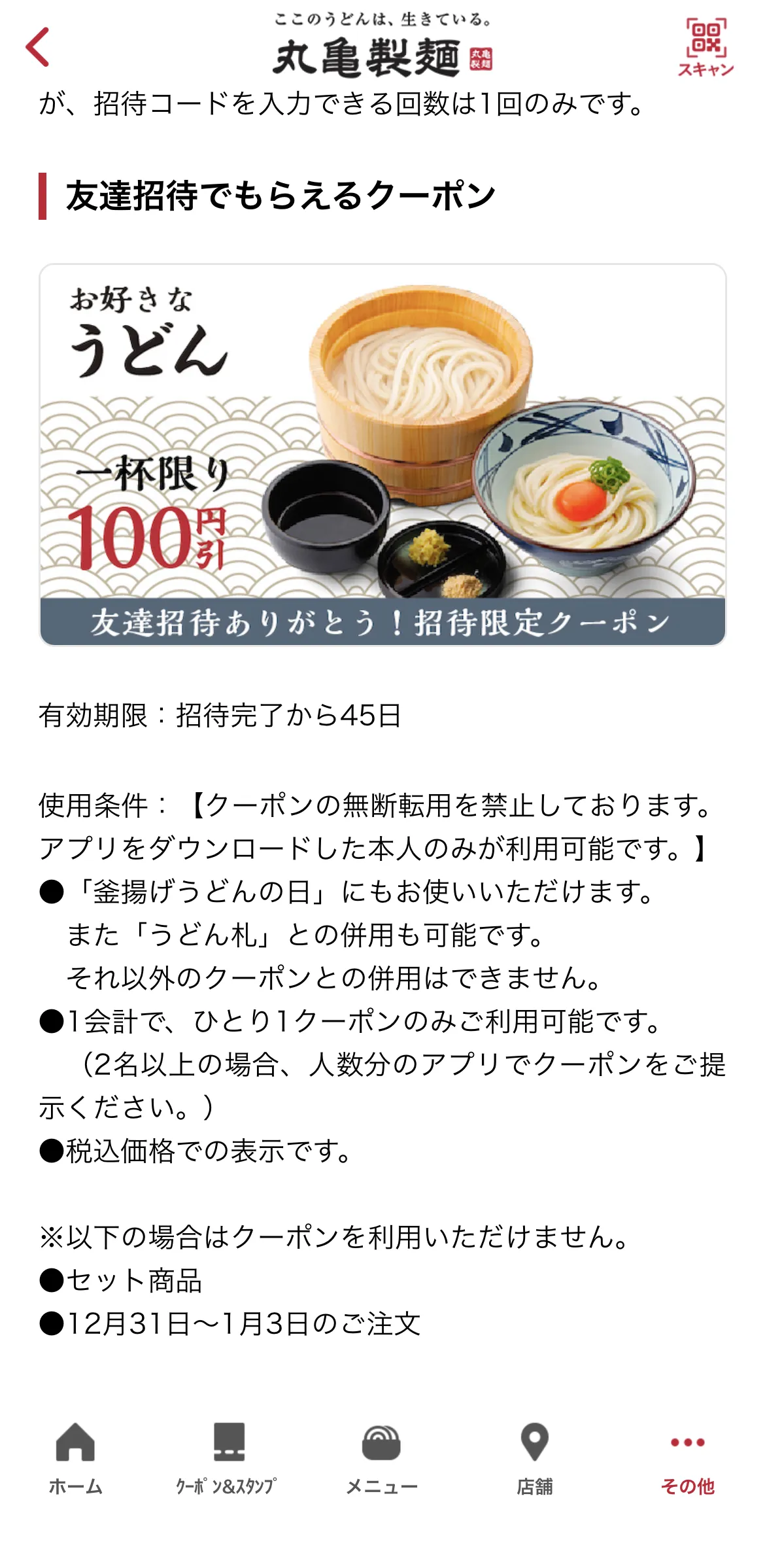 この記事は2026年1月時点で、丸亀製麺公式アプリ内の表示(友達招待ページ/クーポン条件)を基に作成されています。