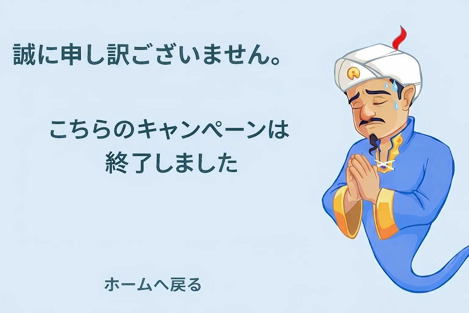 こちらのキャンペーンは終了しました X Facebook はてブ LINE コピー 2026.01.17広告(advertisement) 恐れ入りますが、こちらのキャンペーンは終了しました。 以下のボタンよりトップページへお戻りください。🙇 ▶ トップページに戻る