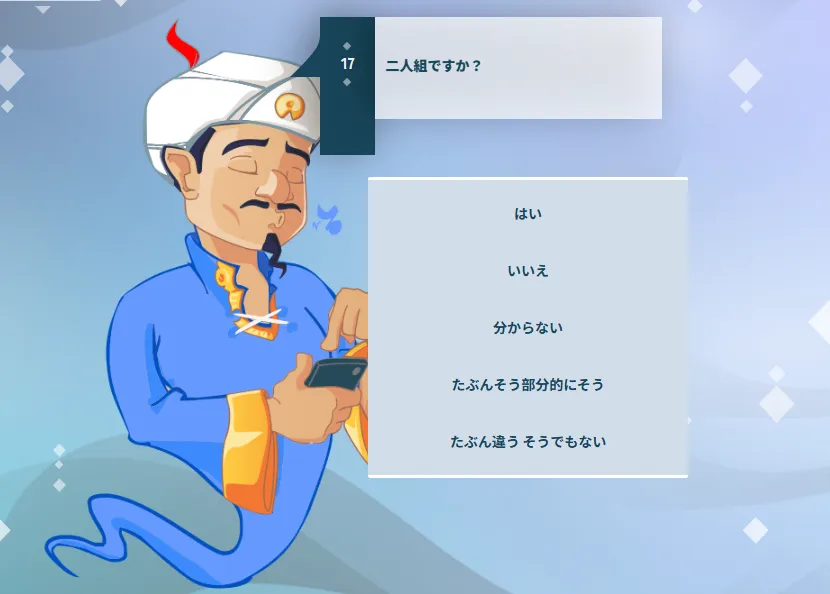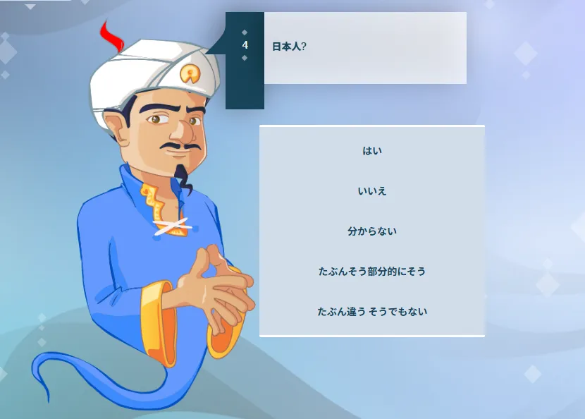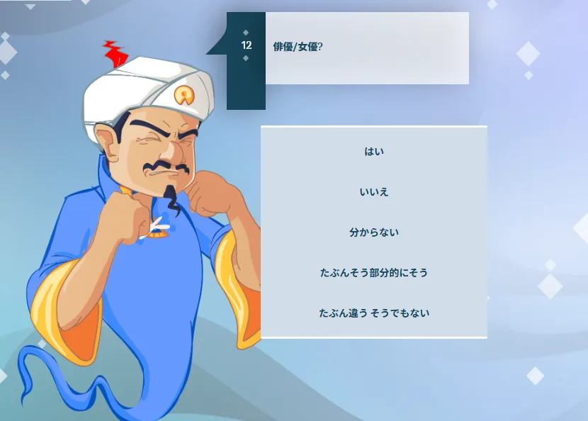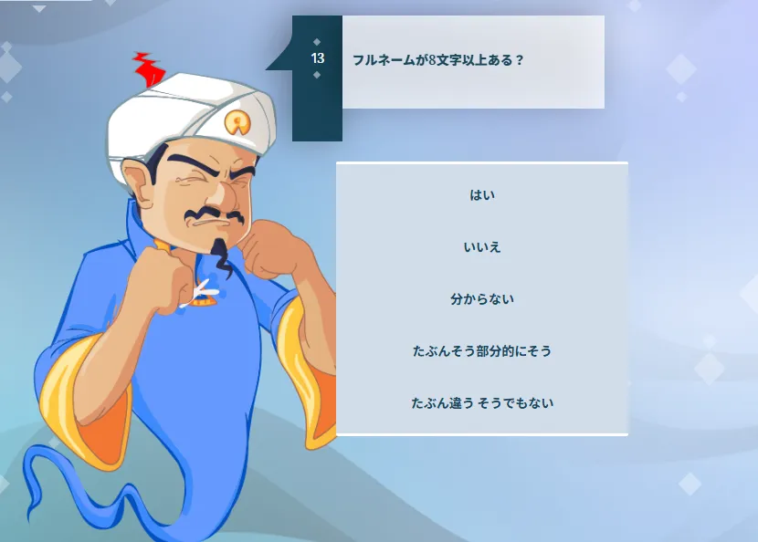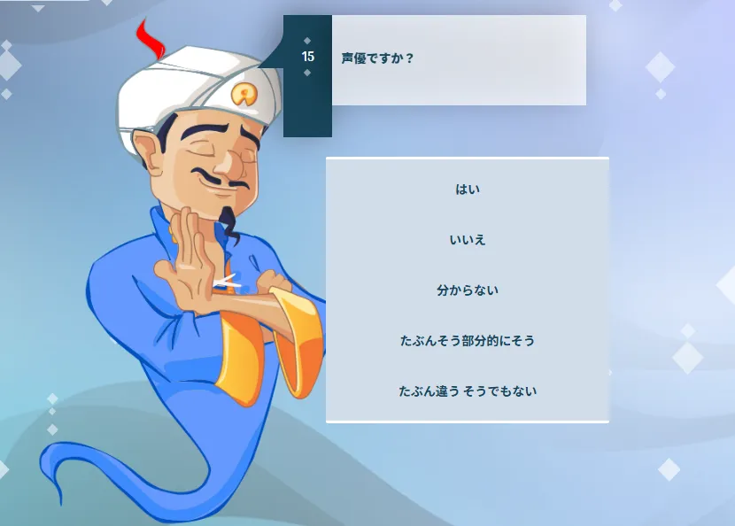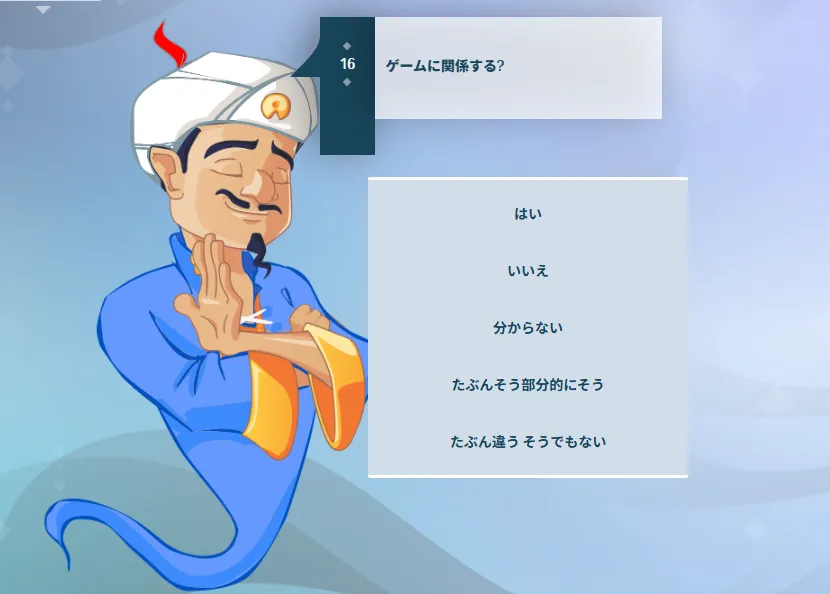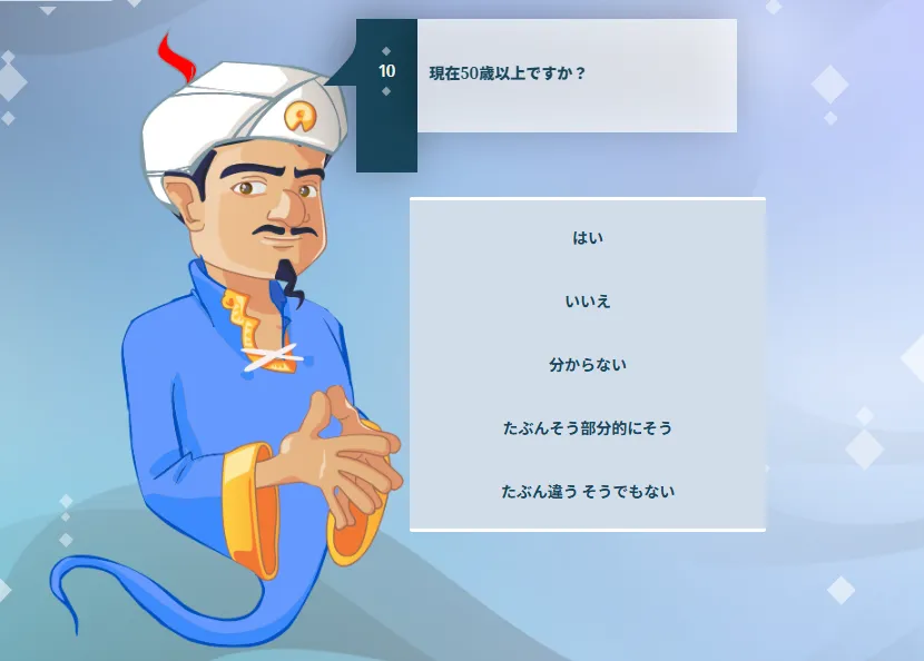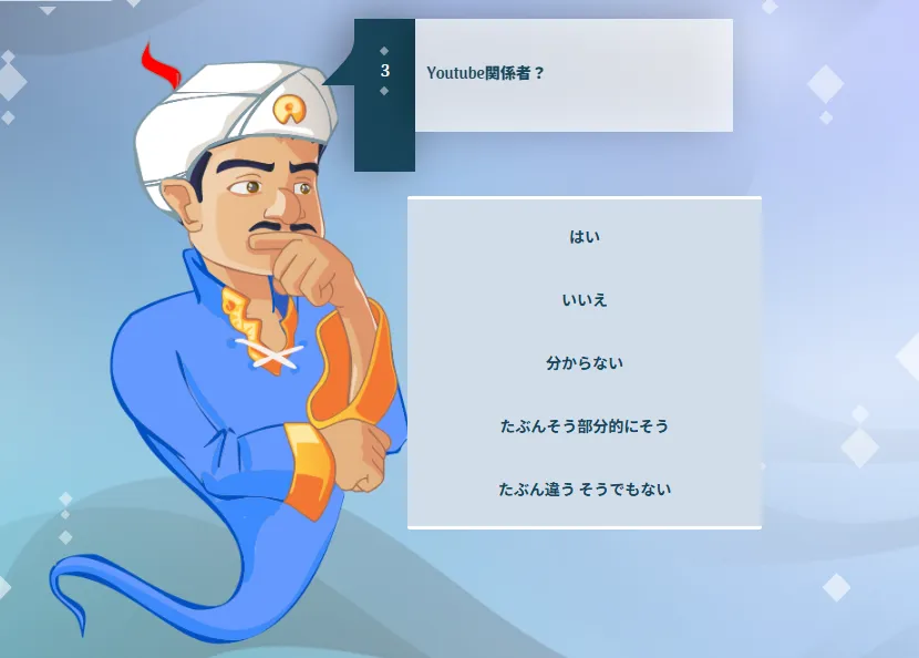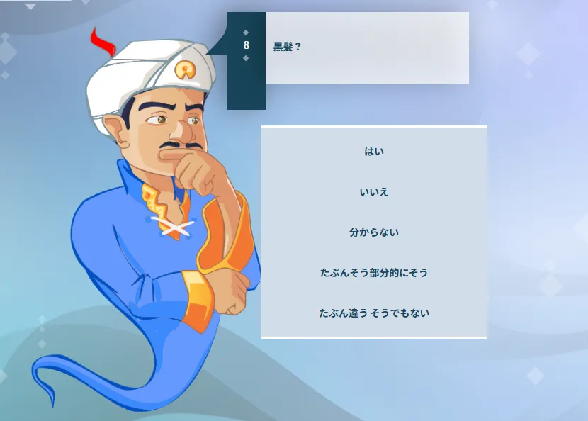 アキネイター(Akinator the Genie)については、『アキネイターとは』をご覧ください