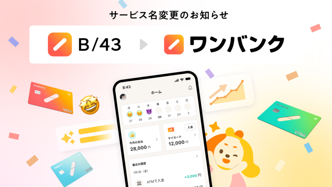 【公式情報】B/43は「ワンバンク」へ名称変更 – ワンバンク公式サイト