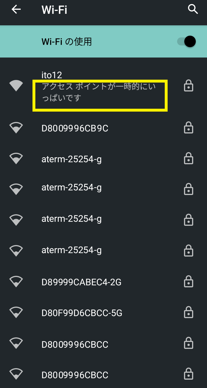 アクセスポイントが一時的にいっぱいです(androidの場合)